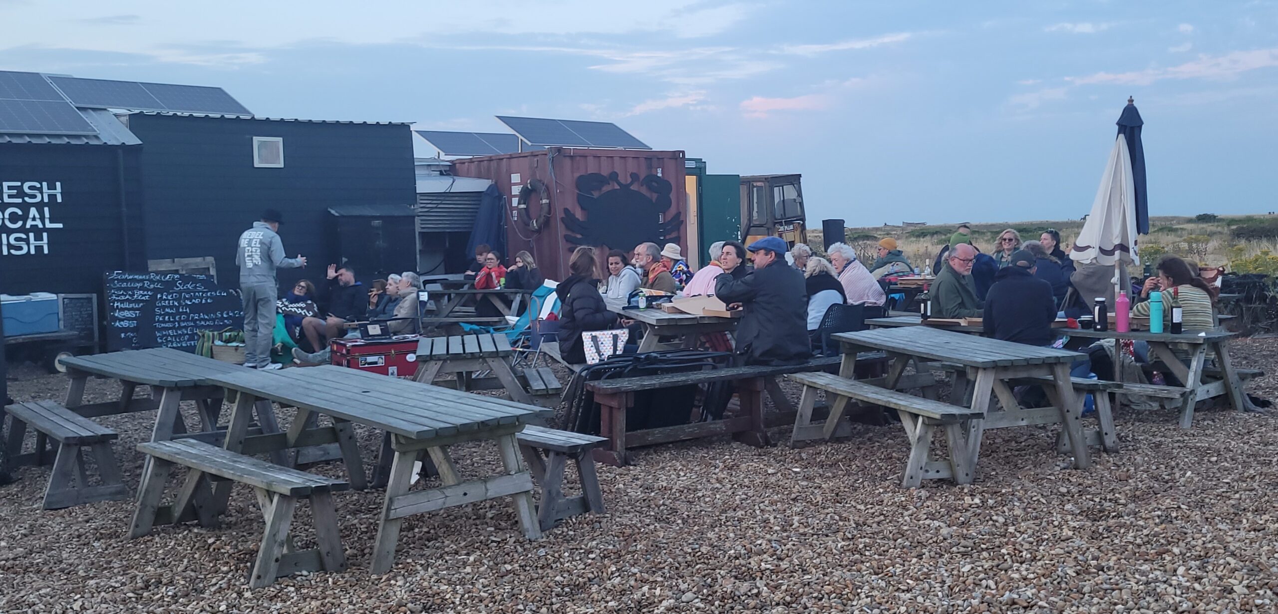 People gather before the film for drinks and delicious fresh pizza (from locally-based Baker That Bakes Pizza) accompanied by music until the light fades. On one of the hottest and most humid days of the summer, it was hard to imagine that we would need the long sleeves, jumpers and blankets recommended but the sea breeze that blows uninterrupted across the flatness was more than cooling.