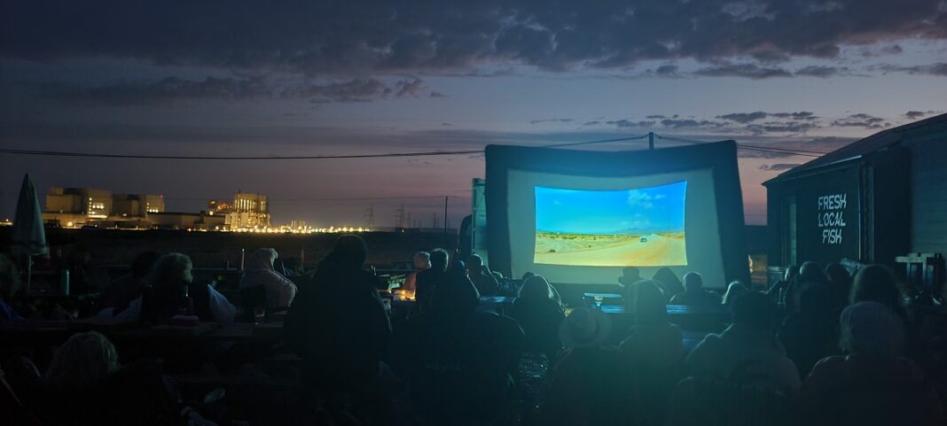 “We screen on Dungeness because there is literally nowhere like it on earth! A desert by the sea with Derek Jarman’s cottage… Every film we screen is enhanced by screening outside with the gentle hum of the power station, the sea and endless sky… We pick each film to fit either with the end of the world feel or because visually it just works… horizons, sweeping plains or uptight characters… We have regulars travelling from all over as well as loads of locals!”