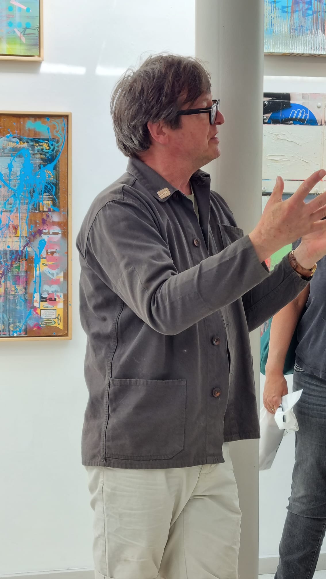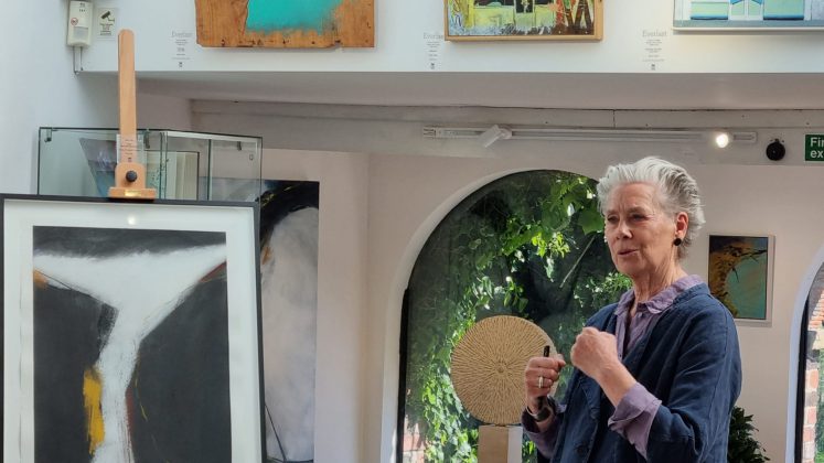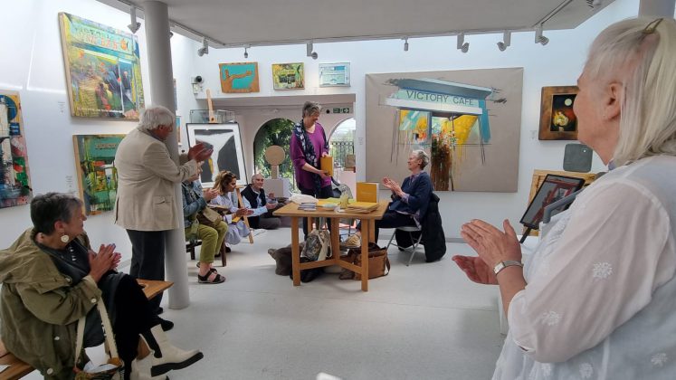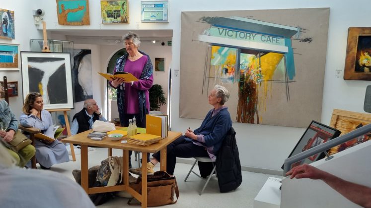 It is both beautiful to behold and hold. In bringing together the first experience that Dr Day had when hearing Peronel’s poetry pouring across Sally’s painting at a post-pandemic, much-postponed, exhibit last year, we have something rare. Peronel’s powerful readings summoned for us the sounds of the sea, and Sally’s piece on display, “The Gap”, glowed as if shimmering in the spring sunshine streaming through the atrium above.
