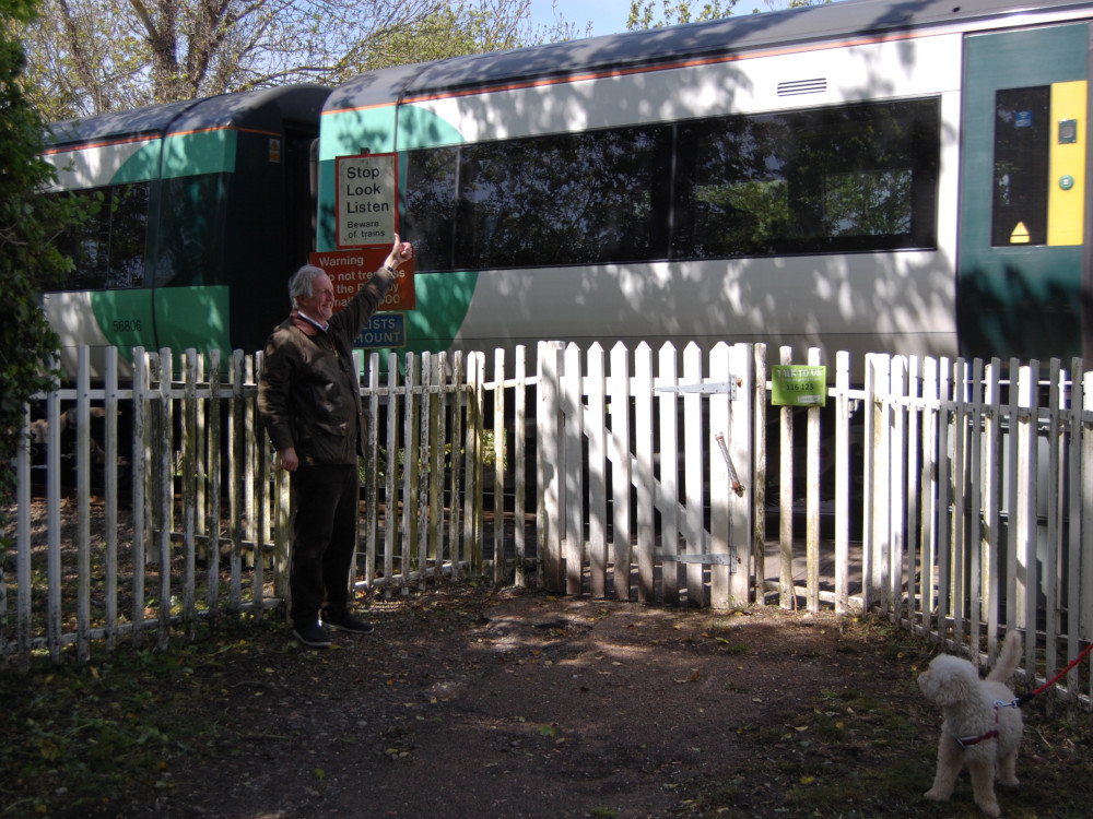 We watched the train together, and the driver did wave back. Then he walked first across the track and I left him on the green grass with Daisy the poodle as I continued on my way round the fields to West Undercliff.