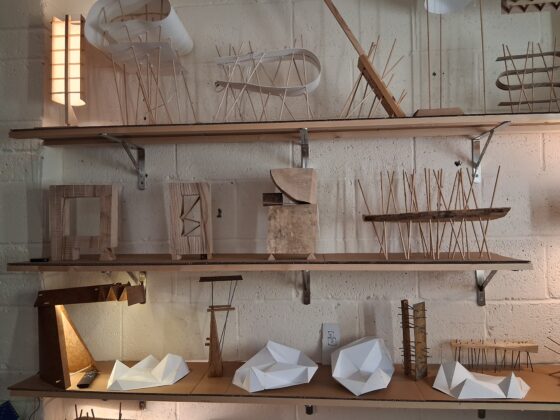 Walking toward a smaller room, this offered a totally different aspect of art. David Eckold’s studio was a fascinating collection of wood sculptures. David said he loves working with wood which you can find at home or in the woods and at times also has to be bought. He explains that his love of working with wood comes from wanting to experiment with tension which wood allows. He also feels that working with simple material would be useful and inviting in his educational field with children.