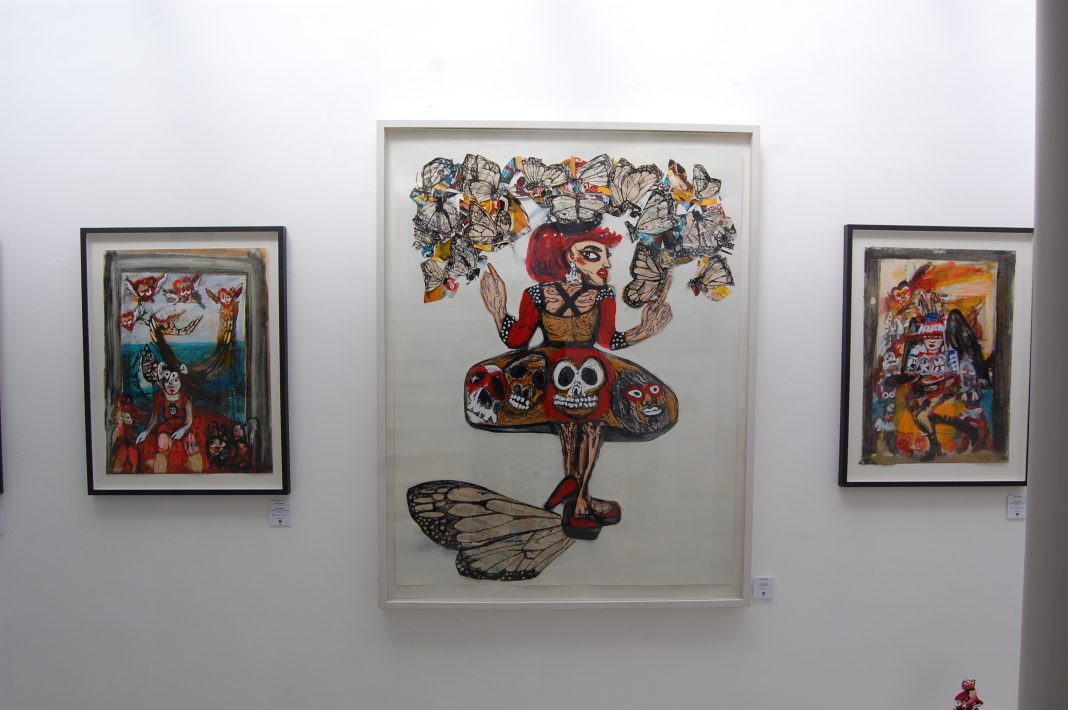 In the second room (by the sales desk) and the third room (at the bottom of the stairs) was the new exhibition of St Leonard’s based Oska Lappin and Gary Goodman, described as two uncompromising Sussex artists. Oska’s paintings are colourful, raw and different, maybe not to everyone’s taste but certainly arresting.