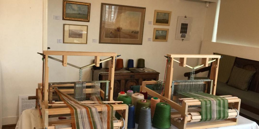On display are products from the raw wool right through to the yarn and finished tweeds. Accompanying these are historic works painted by Howard and Mary Stormont in the studio which has become Rye Art Gallery. Mary Stormont’s oil paintings of Rye Bay and Spring on the Marsh are somehow mirrored in the design of this tweed, which in turn took inspiration from Derek Jarman’s Prospect Cottage in Dungeness.