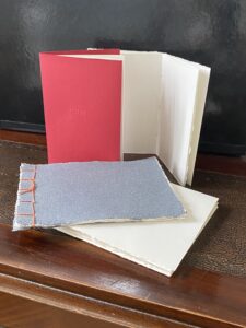 Called ‘Say it with Books’, it was designed to help a small group of people learn to make simple book structures, a leporello (concertina) book, a sewn pamphlet book with a decorated card cover and a folding book for keepsakes. These are pictured so you get an idea of them.