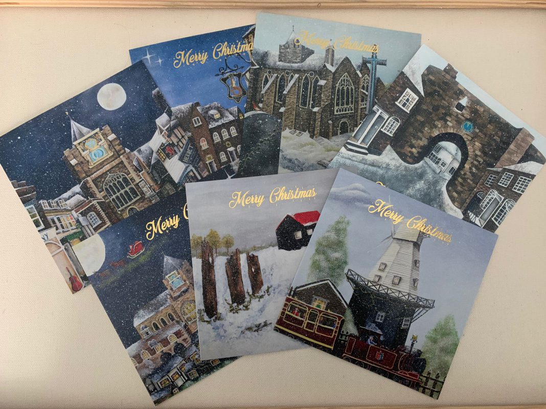 Summer was always interested in art at school and was lucky enough to have a teacher who not only spotted her talent but also encouraged her to go out of her comfort zone and explore all sorts of mediums. She even commissioned Summer to do a painting of the Landgate in Rye and from that painting came the idea of doing a set of cards for Christmas which depict various well-known views of Rye and are quirky in their design. Summer has her own style and it is proving popular – she had to have a reprint of her last set of cards.