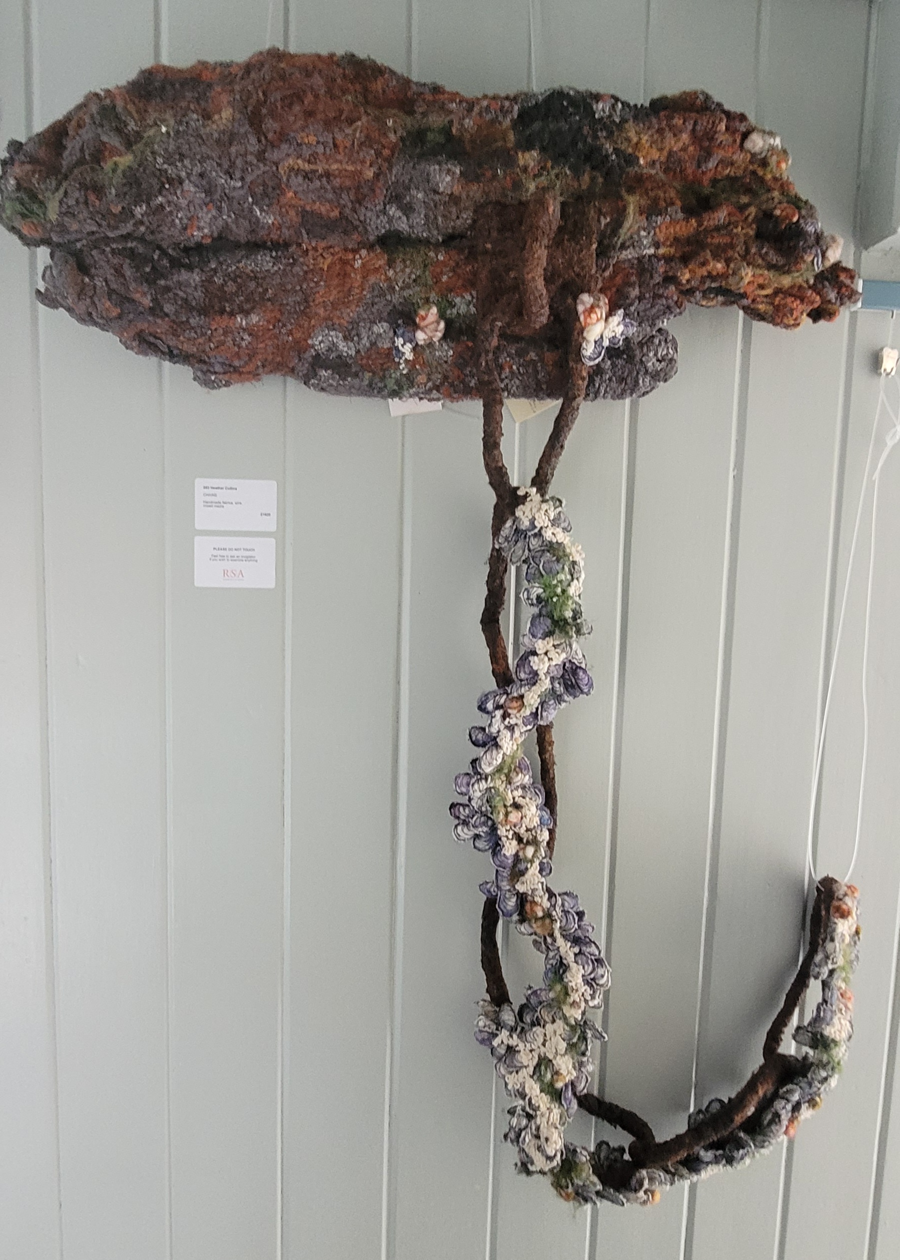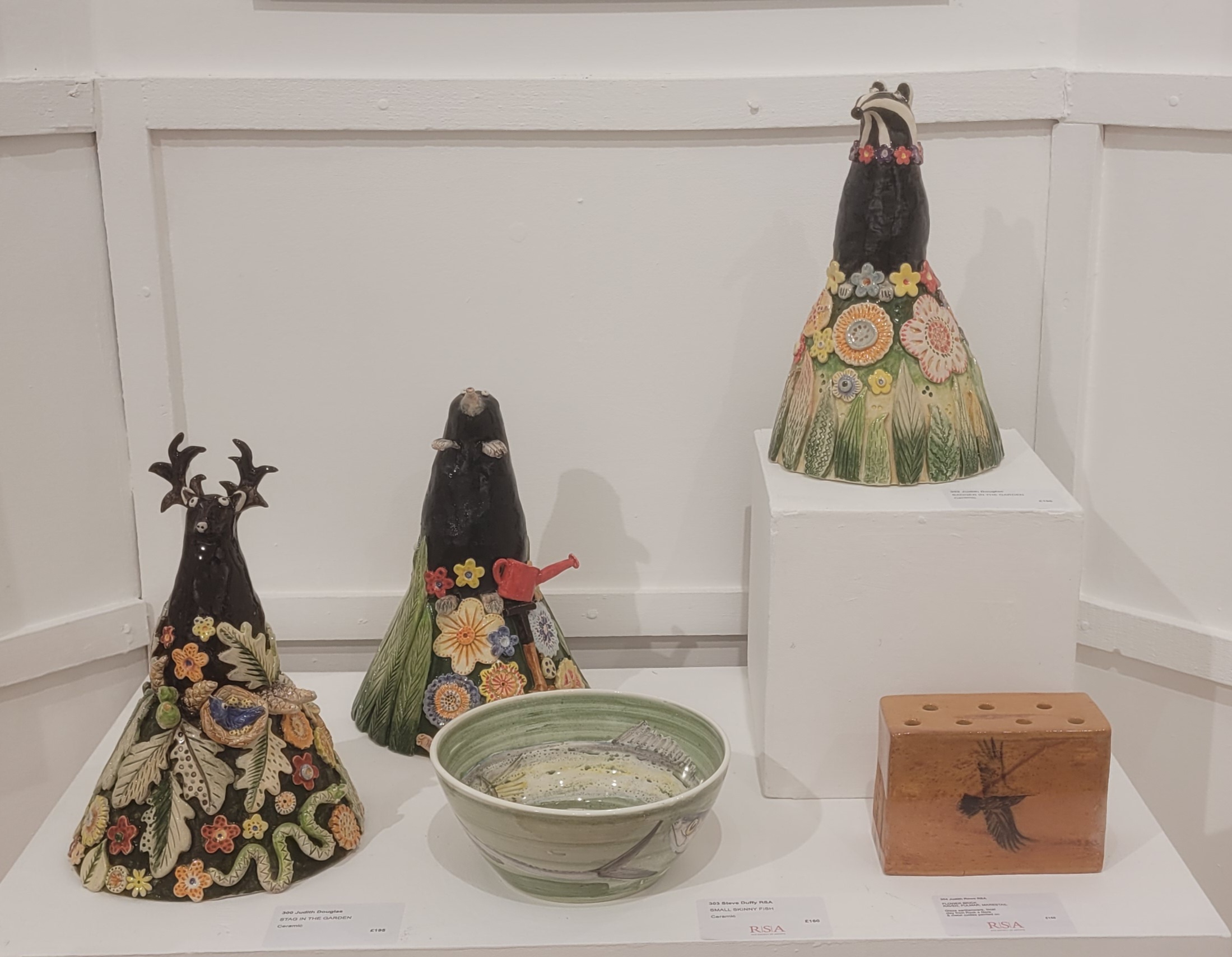 With over 200 works on display by both members and non-members, there is plenty to see and something for all tastes. The range of different media on display is impressive – oil, acrylic, watercolours, prints, ceramics, mixed media, bronze sculptures, 3D objects, textiles, crayon, pastel and pencil drawings. Members can submit up to six pieces and non-members can submit two. This year has seen many more non-members submitting work, over two thirds of the exhibition is by them, hung alongside long-standing members including Richard Adams, Louis Turpin and David Crew.