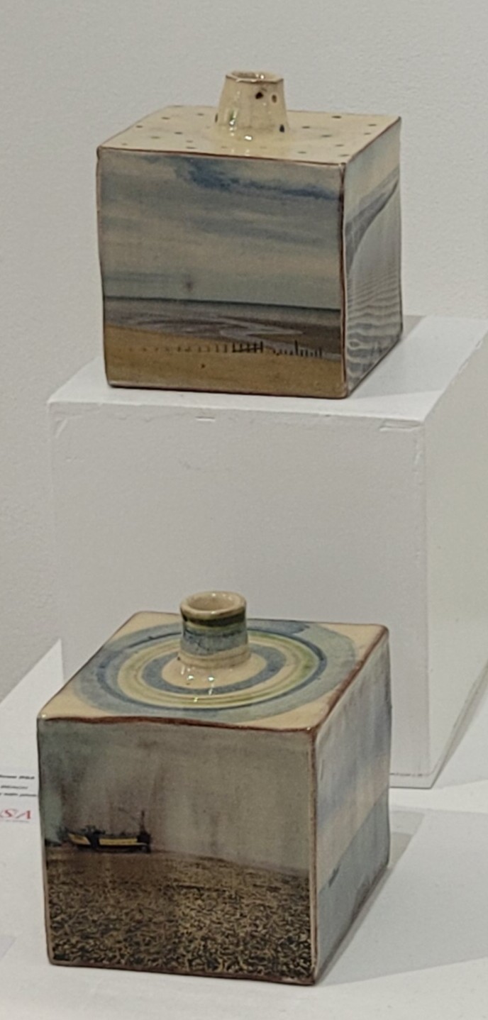 Ceramics feature strongly, connecting today’s artists with Rye’s potteries of the past including work by James Fuggle, Steve Duffy, Carole Sheldrake, Judith Douglas, Sarah Palmer, Kate Schuricht, Yvette Glaze and Joanne Terry. Judith Rowe, who is based in Hastings, is showing new work of rectangular and cuboid pots and slabs decorated with phototransfer images along with her teacups, vases and candlesticks.