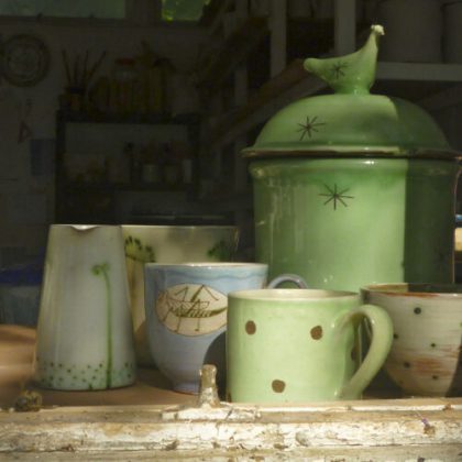 Following this she built her own studio on Eel Pie Island in the Thames at Twickenham, where she developed her own range of earthenware pottery over a decade.