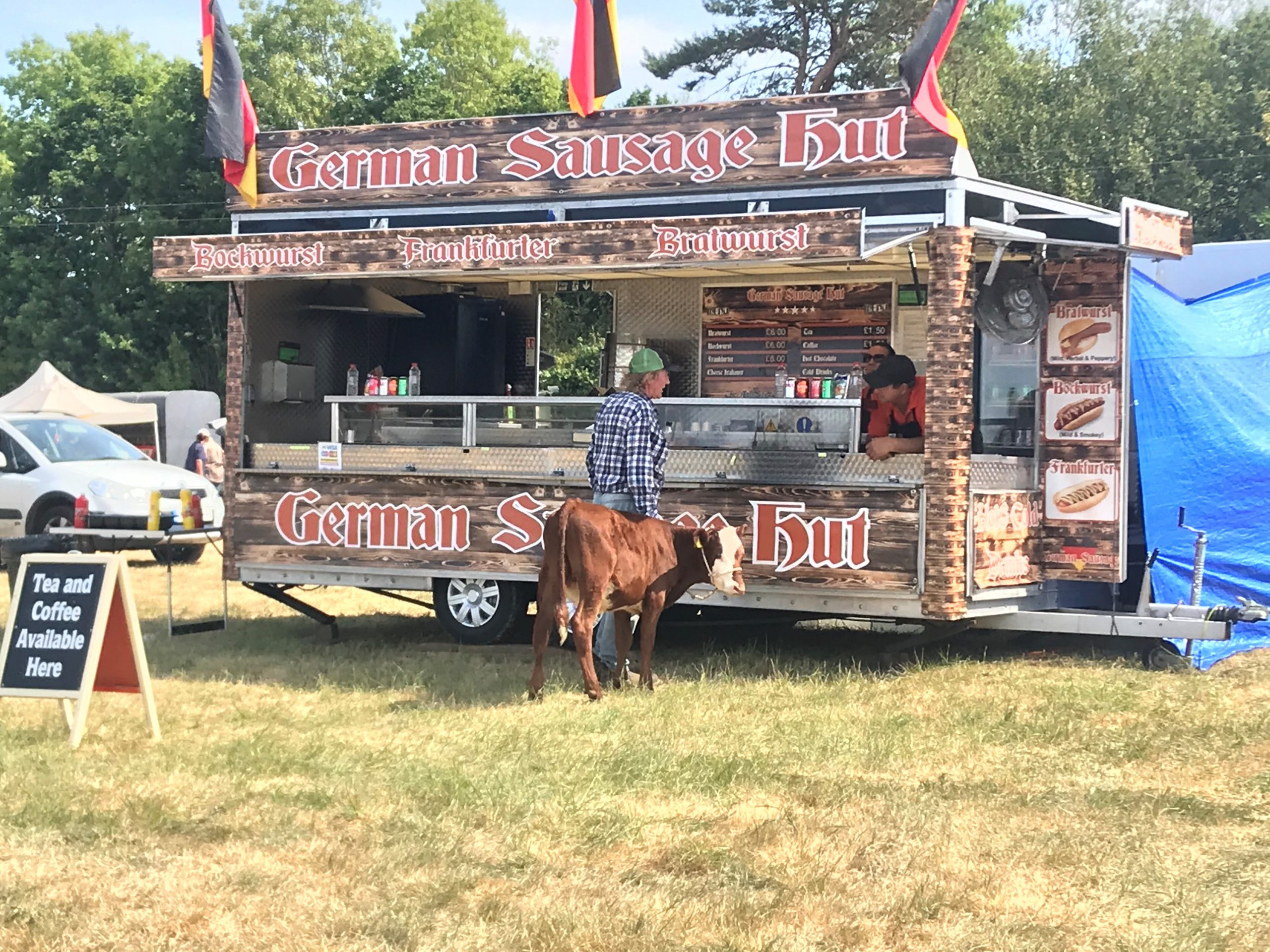 Elsewhere, the beer tent offered plenty of welcome shade; a calf being led towards the German Sausage Hut looked understandably nervous; and there was a choice of burgers, gourmet griddle, pizza, hot dogs, cocktails, ice creams and milk shakes. In the craft marquee were wooden gifts, chutneys, jams and marmalade, textiles cards and handicrafts, handcrafted jewellery and a pencil artist specialising in equestrian drawings.
