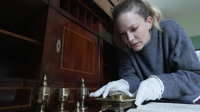 The third series of Hidden Gems of the National Trust looks at the work the Trust does to conserve objects in its collections and reveals the stories of the objects and their owners. The first episode, focuses on three houses with literary connections including Henry James’ Lamb House in Rye; Hill Top in Cumbria, the home of Beatrix Potter; and Clouds Hill in Dorset, the cottage of writer and soldier, TE Lawrence (Lawrence of Arabia). The piece features in Lamb House is Henry James’ secretaire, a writing desk with a cabinet section, which needed repairs to splits, wood veneers and hinges.