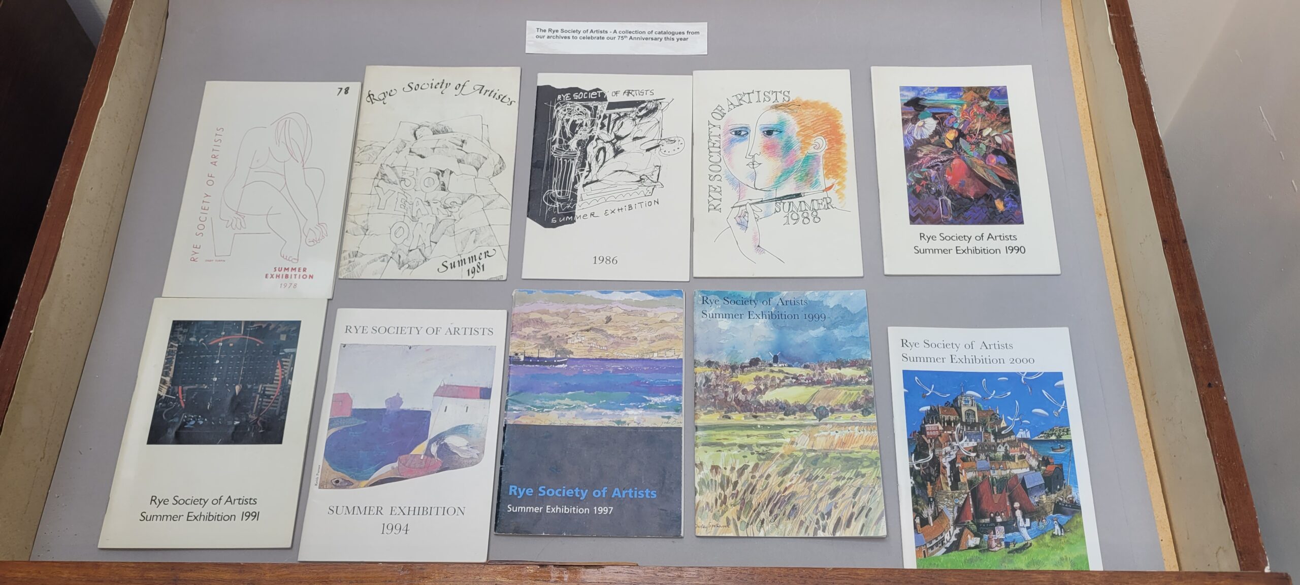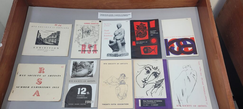 The RSA is in its 75th year having started out in 1951 as the RX8 group and has continued to support and exhibit local artists through its annual spring and summer shows. Displayed are some examples of the society’s exhibition catalogues from 1950s onward, with covers capturing the design and typography of the times. In its early shows, work by the gallery’s founder Mary Stormont (1871-1962) was displayed alongside that of Wally Cole, Geoffrey Bagley, Margaret Barnard and Ken Townsend – spanning both the Victorian and Edwardian eras, early 20th century modernism and the post-war aesthetic of the Festival of Britain.