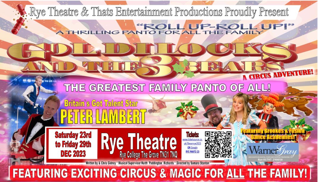 Goldilocks and the Three Bears – A Circus Adventure! Runs twice daily at Rye Theatre, Rye College TN31 7NQ from December 23 – 29. Tickets are available from www.ticketsource.co.uk/3bearsrye2023.