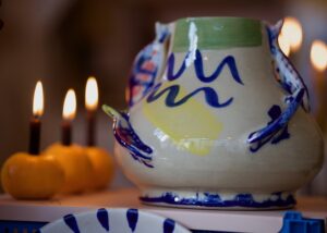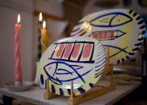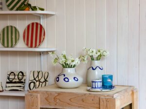 Kate, the creative force behind the K.S Creative Pottery brand, is known for her joyful, small-batch, handmade tableware inspired by Sicilian design and crafted from Staffordshire white stoneware clay. Her playful pieces, such as striped plates and whimsical face-inspired ceramics, have already garnered attention beyond Rye, including acclaim from notable destinations like Liberty.