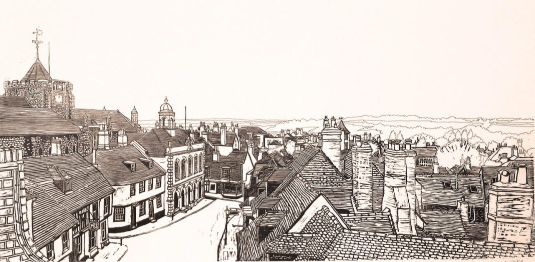 Rye Conservation Society’s Christmas card serves an important two-part role. First, it is a seasonal greeting from the society that has been delivered to its members and supporters in these troubled times, offering an iconic rooftop view of Rye from a linocut by talented committee member Mike Stott.