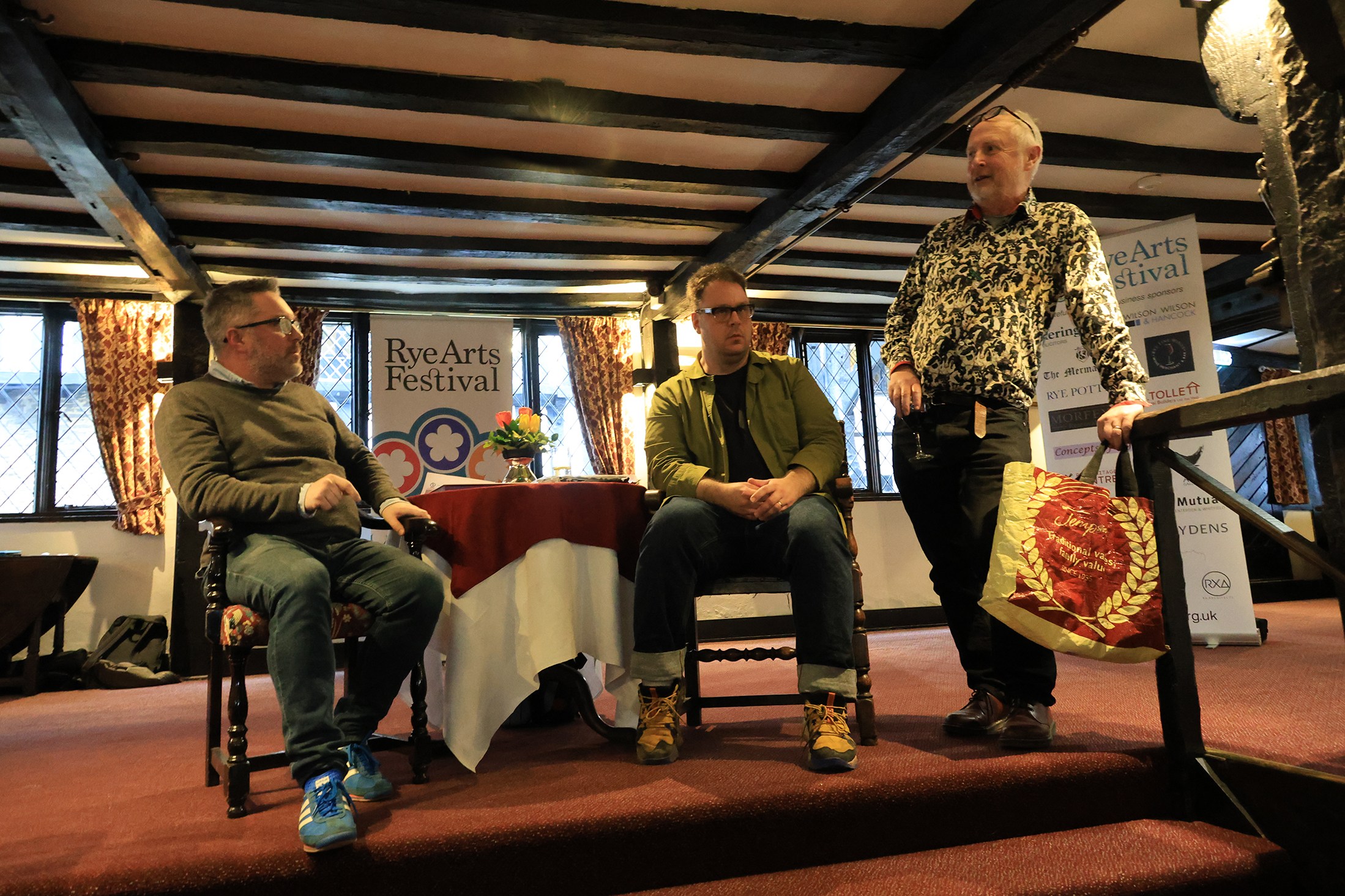 1. On behalf of Rye Arts Festival I would like to thank Tim for an excellent talk and an entertaining and illuminating Q & A session. Thanks too to the Mermaid for hosting the event and for opening the bar for late morning refreshments. Thanks to David Angell for organising the event and last, but far from least, big thanks also to Kt for photographing and reporting it!