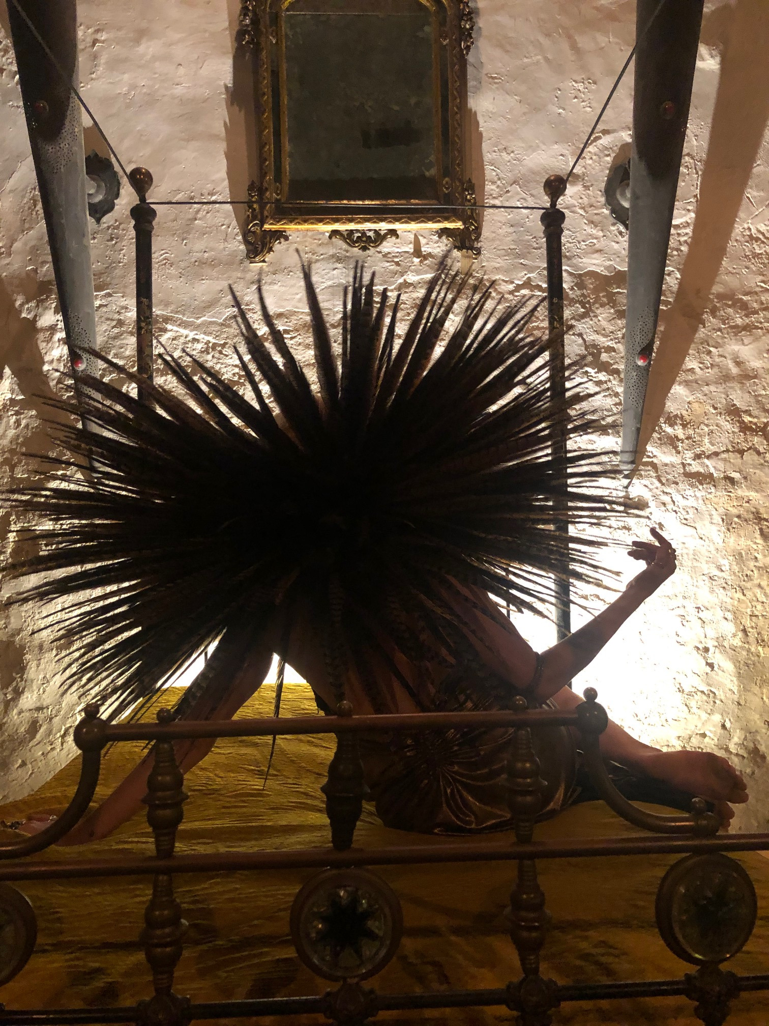 This brief account (and leaving out much detail) of a variation of the well-known story, however, is no spoiler as it hardly begins to describe the intensity and visual impact of the performance. The energy of the dancers, the always-implied and often overt decadence and venality of the court to which the background of the building, despite its original purpose, seemed to lend itself, kept the audience captivated as we moved from room to room