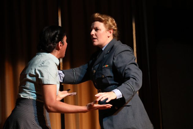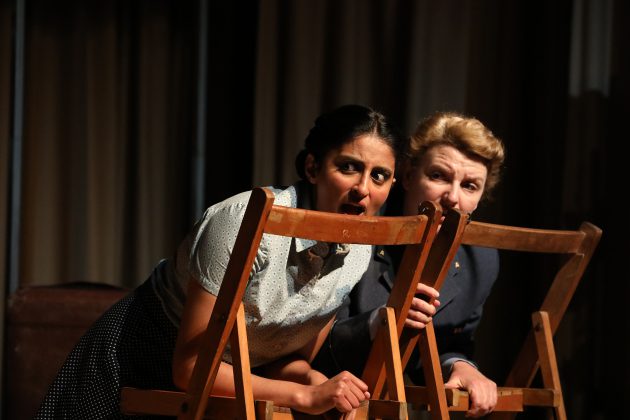 “The play used a minimalist set and props throughout: a desk, a couple of chairs and doorways, which effectively created the scenes of the action. The writer, Deborah Clair, played the role of Vera, admirably portraying the picture of a no-nonsense, well-spoken English women of the times. Natasha Jayahendry, playing Noor, beautifully created the sensitivity but determination of this brave agent.