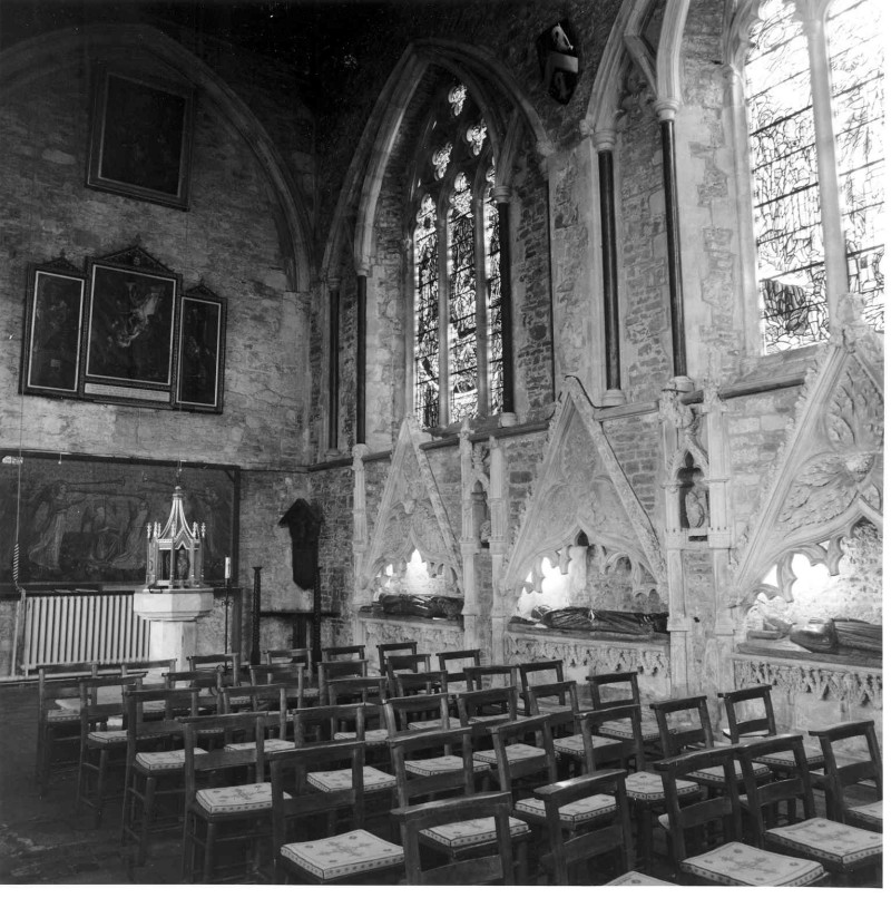The parish church is named in honour of St. Thomas the Martyr, Archbishop of Canterbury, who was murdered in his own cathedral in 1170 and the photo shows the north wall of the church where there are three canopied tombs with effigies of a knight, a lady and an unknighted youth, all carved from Sussex marble. The knight has his legs crossed in the manner of a crusader.