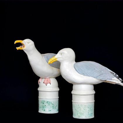 The exhibition also includes work by Jackie Summerfield who is well known for her ceramic heads of animals, birds and people, among other works.