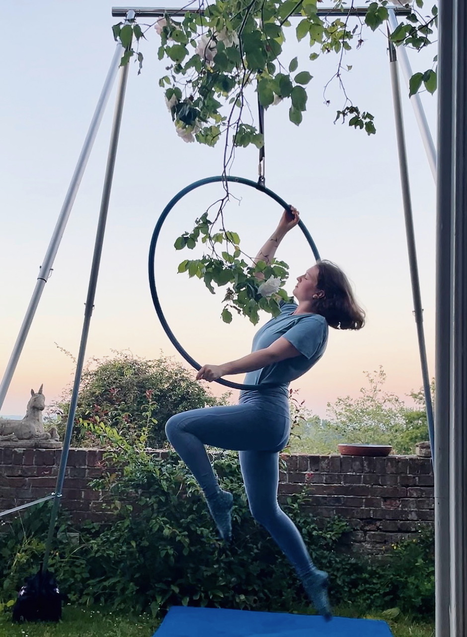 Also appearing is Lucy MacRae a young Rye artist with a passion for teaching the performing arts. Lucy studied fine art in Bristol and discovered Circomedia where she explored the theme of ‘therapeutic play’ through circus skills. She has trained in aerial acrobatics, flow arts and somatic movement for the past six years. Her practice has immersed her in the wonderful world of clowning from collectives in Boomtown Festival to sharing circus skills in refugee camps in Bulgaria with the Flying Seagulls. She currently teaches aerial arts at Simia Circus in Ashford and annually at Rye’s arts festival.