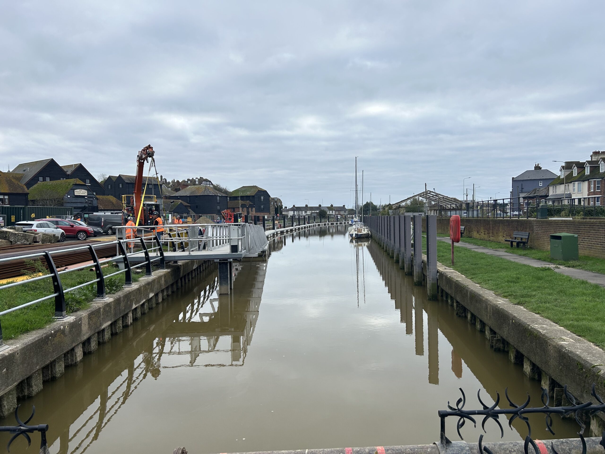 In this 1945 photo, the built up quay can be seen with St Margaret’s Terrace in the background. There was no road past the warehouses until the A259 was built in the 1960s and a flood wall built between the road and the quay.