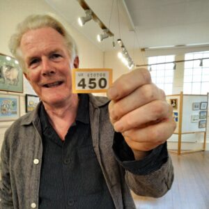 Felicity Pike, chair, and the committee have to thank Richard Adams, our philanthropic vice-president and acclaimed Rye artist, for the generous raffle donation of one of his original pastel paintings, ‘The Mudlarks’. He’s seen here drawing the winning ticket at the close of the exhibition. It’s just waiting now to go to its new home in Oxford. Congratulations to the purchaser of ticket number 450!
