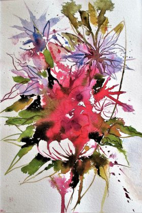 Runner up: Janet Haken – ‘Picked to Paint’. Experimental quick-paint watercolour.