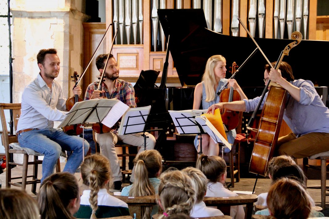 Education Showcase June 23: Sam Glazer works inspirationally with classes from Beckley and Peasmarsh Primary Schools to elicit brilliant songs suggested by the theme of ‘Summer’. All this is enthusiastically supported by the members of the Doric String Quartet and is made possible by sponsorship from the Rudi Martinus van Dijk Foundation.