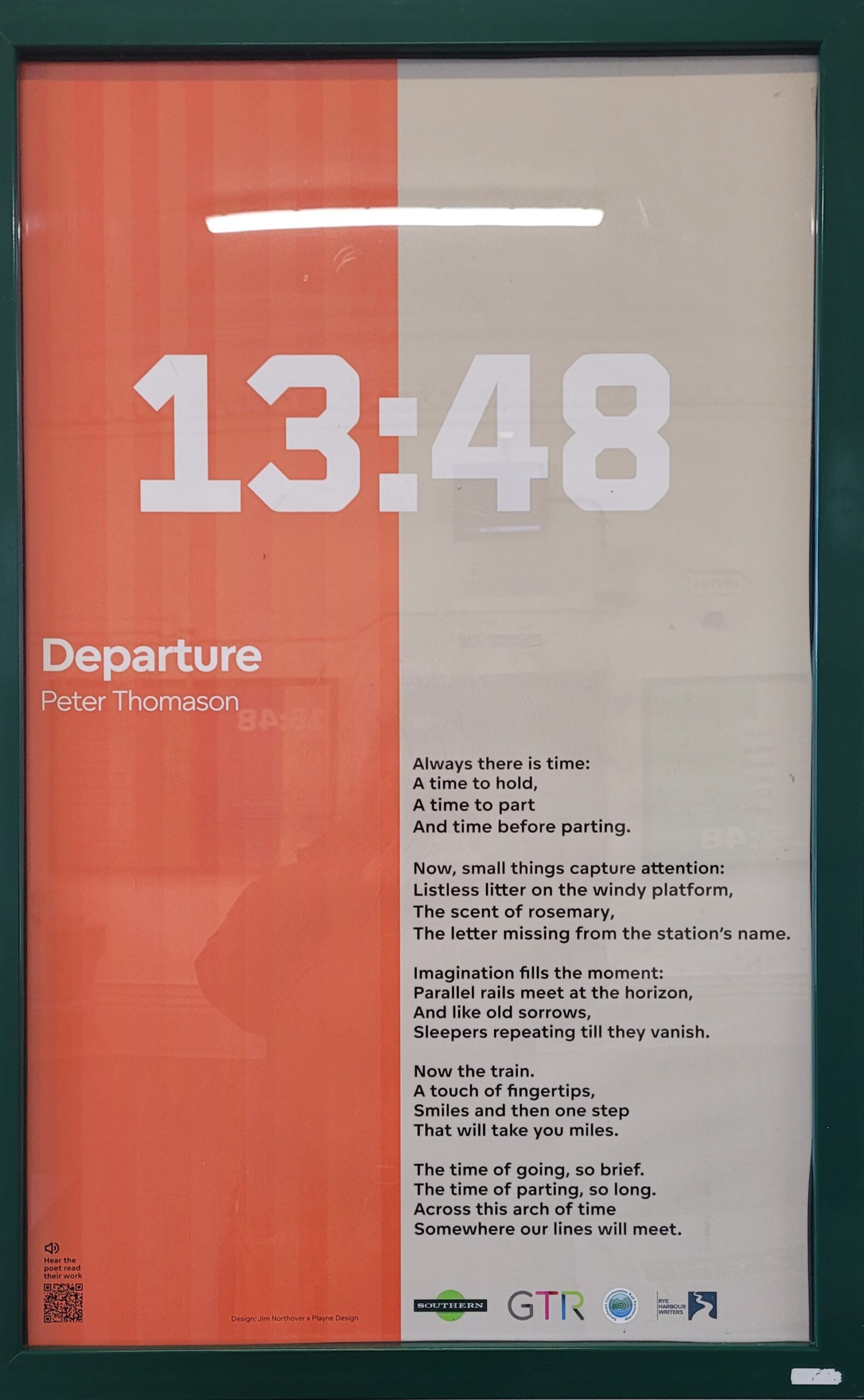 This is an excellent initiative. I travel by train from Rye once a week on average. I love language and literature, but often struggle with poetry. However, when I was last at the station, I read and enjoyed a couple of the pieces on display. 15.48 (“On the train” by Caroline Fraser) was a perfect prelude to my trip to Hastings.