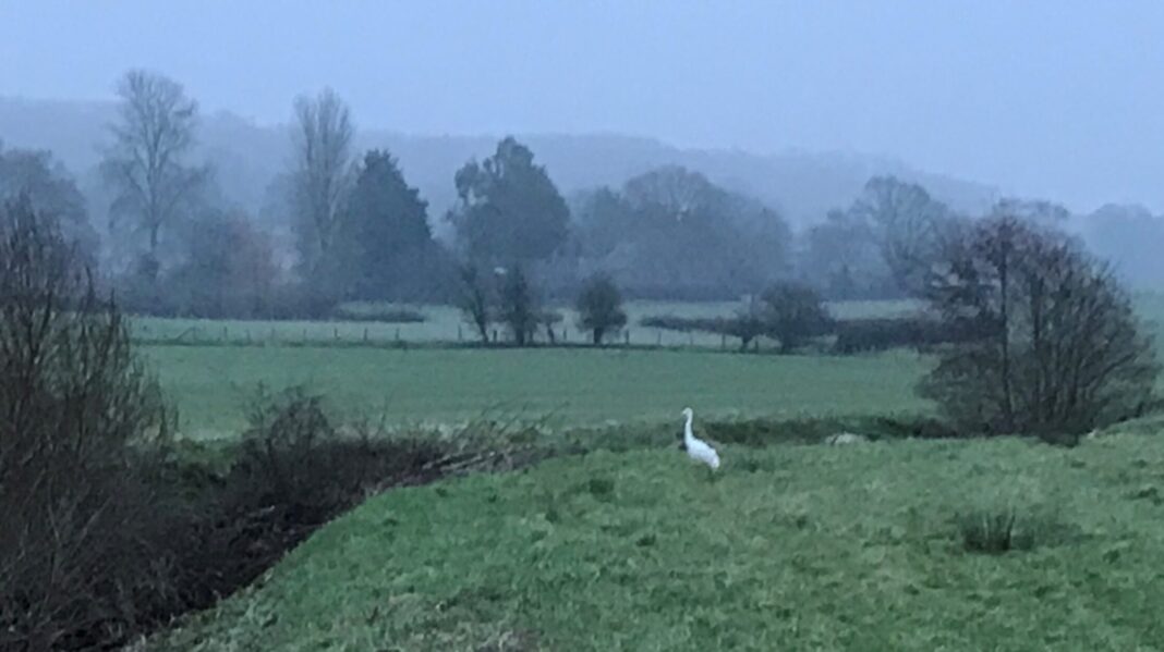 While driving from Udimore Road along Hundred House Lane in rural Peasmarsh, something in the distance caught my eye. At first I thought it was a swan, after all they are pretty common in the area so no surprise if it was but then, as I got closer I began to wonder what it really was, as it certainly wasn’t a swan.