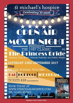 It is the first time that the Hospice has put on this type of event at The Hub, Quarry Farm (in Bodiam) – the perfect setting for a showing of the classic 80s film, The Princess Bride! Tickets are £10 and must be booked in advance via Eventbrite. All ticket sales go directly to the Hospice to support the care that St Michael’s Hospice provide to adults in Hastings and Rother, who are affected by a progressive life-limiting illness or bereavement.