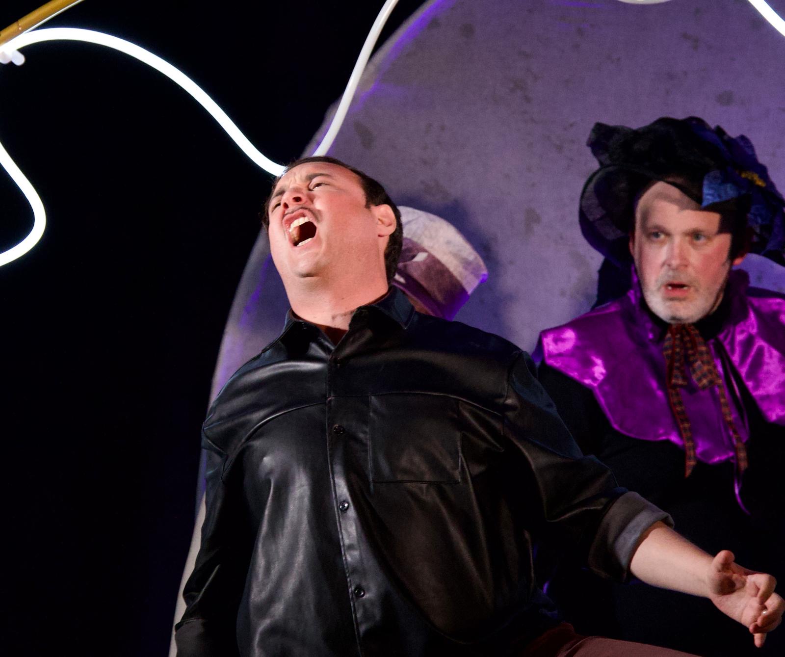 talented soloists and musicians to portray this tragic story with fiery pathos, intense focus and dynamic energy. The singers acted as well as they sung. The musical ensemble of sax, accordion, double base bass, piano and small percussion amply filled the role of a symphony  /pit orchestra that would normally accompany this opera. Members of the Marsh Choir provided the chorus with powerful stage presence. The staging reflected