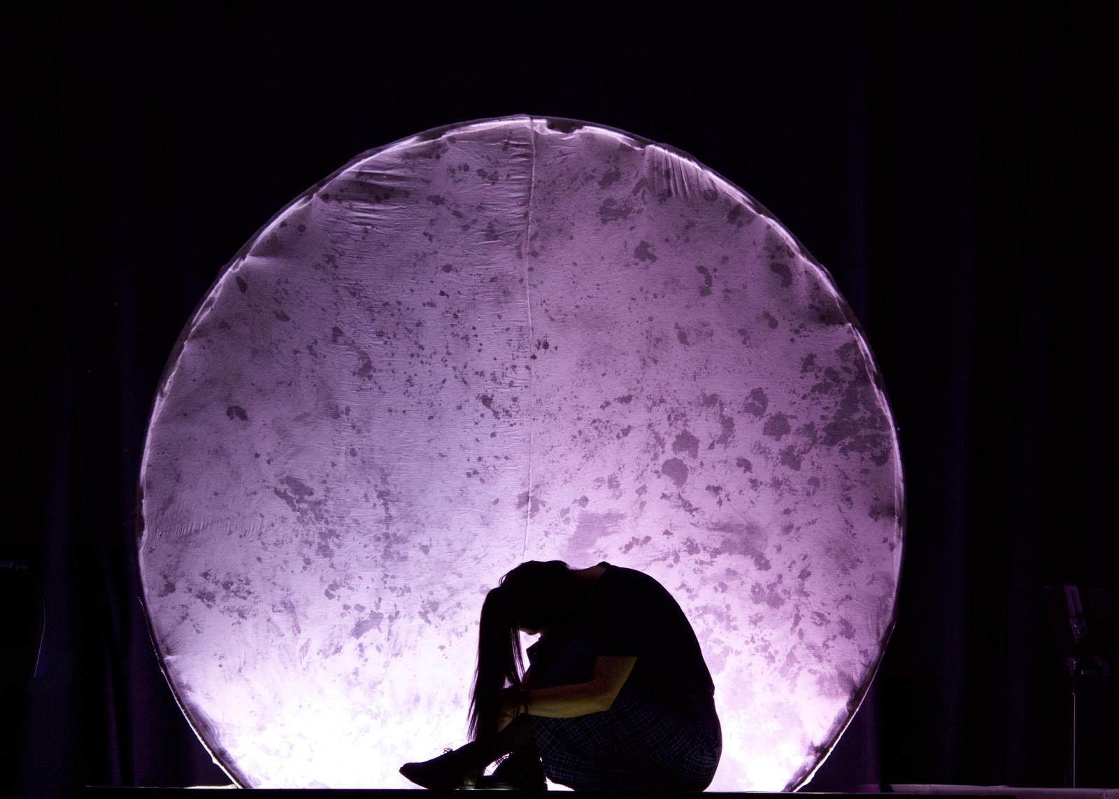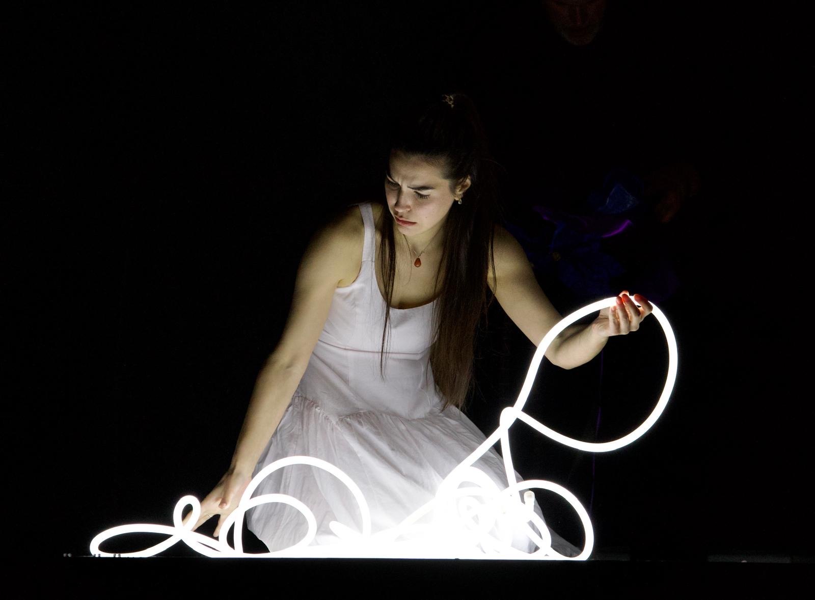 Lucia’s mental turmoil. She entangled herself in a coiled LED white rope which