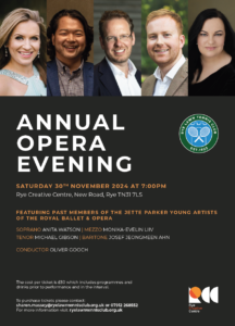 The Royal Opera House comes to Rye next month with an evening of music at the Creative Centre on Saturday November 30. Rye Lawn Tennis Club’s fifteenth annual concert will see some of the opera house’s most talented singers on stage in the Old Gym.