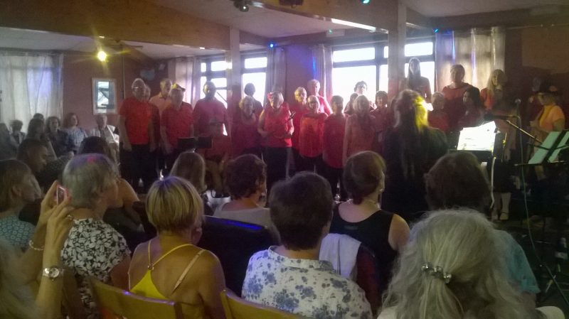Sunday July 24 Hastings offered another special music event on a balmy evening at the East Hastings Sea Angling Club, Rock-A-Nore Road in the Old Town. Vocal Explosion which is an open community choir, singing world influenced by Celtic music and music from Africa, Eastern Europe, and beyond, performed with passion and power, concentrating on some lovely harmonies. There was a small but fantastic orchestra with violin, trumpet , drum and guitar which at the end got everybody up to dance and have a fun time.