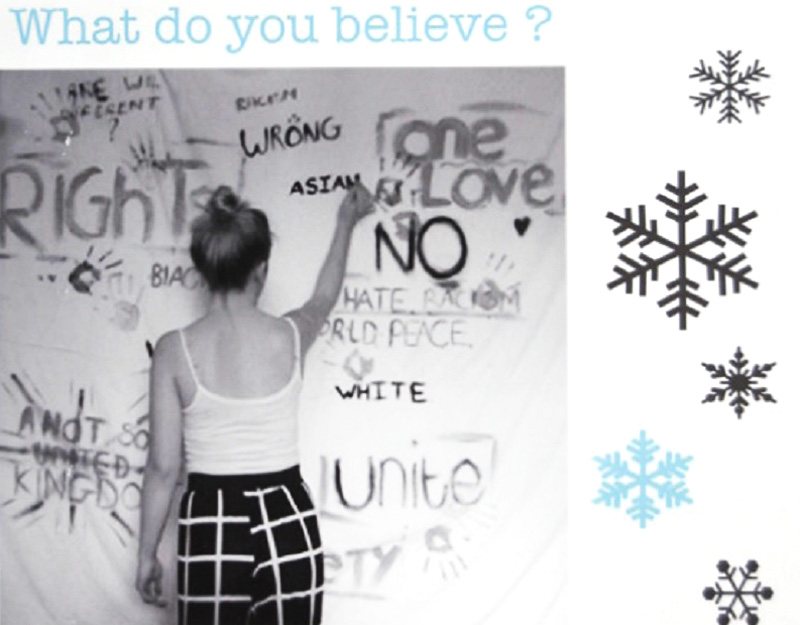 Young people have their own worries and last Saturday (December 6) they were able to express them vividly when, as part of the town’s Christmas festivities, they took over the upstairs room at Café Zara in the High Street and turned it into a studio cinema. Rye Studio School students moved in with a series of short social action films devised and directed by the students themselves under the intriguing title What do you believe? All addressed concerns experienced by young people, such as cyber-bullying, racism, drug-taking, depression and family relationships. The teenage perspective came across as emotionally powerful, sometimes raw, sometimes risqué.