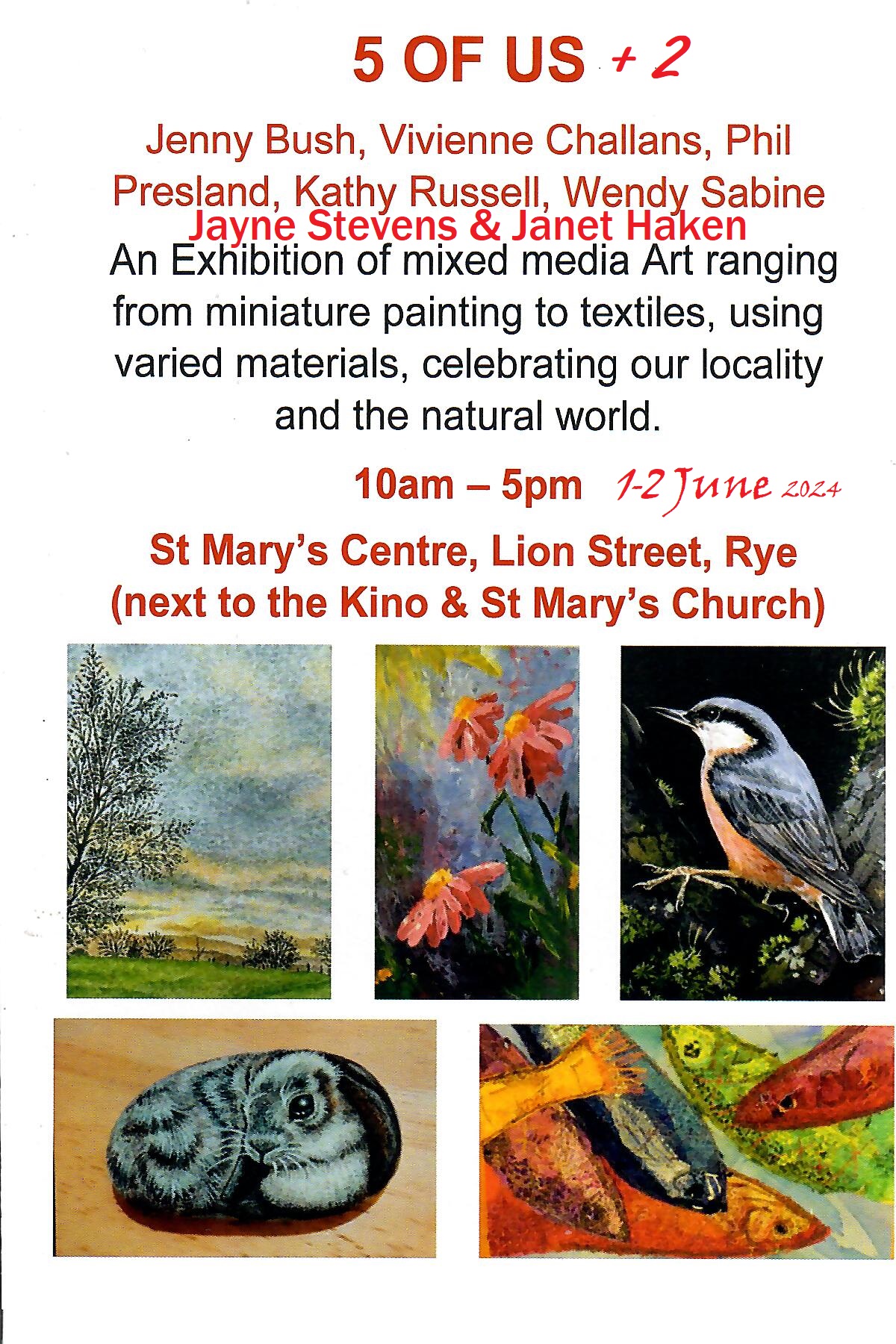 A weekend Exhibition & Sale of mixed media art, presented by local artists, ranging from miniature painting to textiles, using varied materials, celebrating our locality and the natural world.