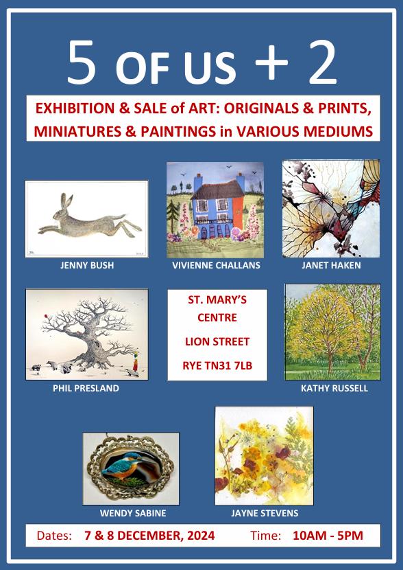 5-OF-US+2 Art Exhibition + Add to Google Calendar + iCal / Outlook export The event is finished. Date Dec 08 - 09 2024 Expired! Time Daily, 10am-5pm All Day Location St Mary's Centre St Mary's Centre, Lion Street, Rye Category Christmas Share this event