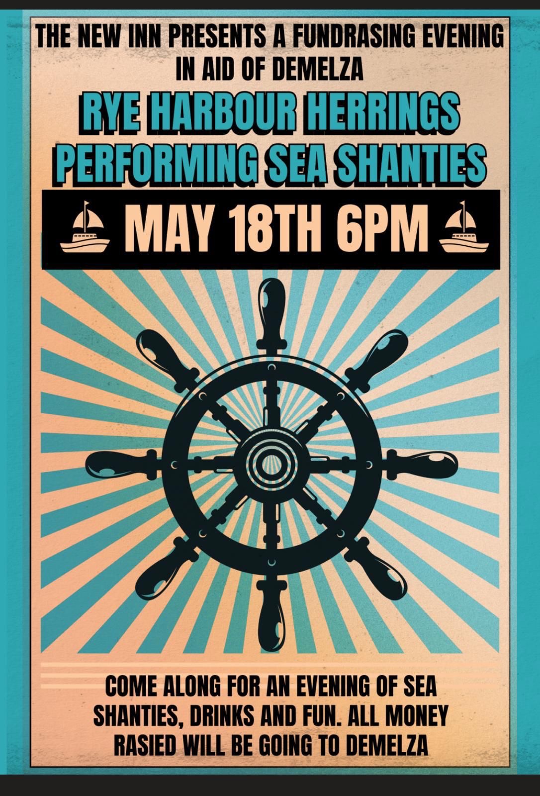 COME ALONG FOR AN EVENING OF SEA SHANTIES, DRINKS AND FUN. ALL MONEY RASIED WILL BE GOING TO DEMELZA