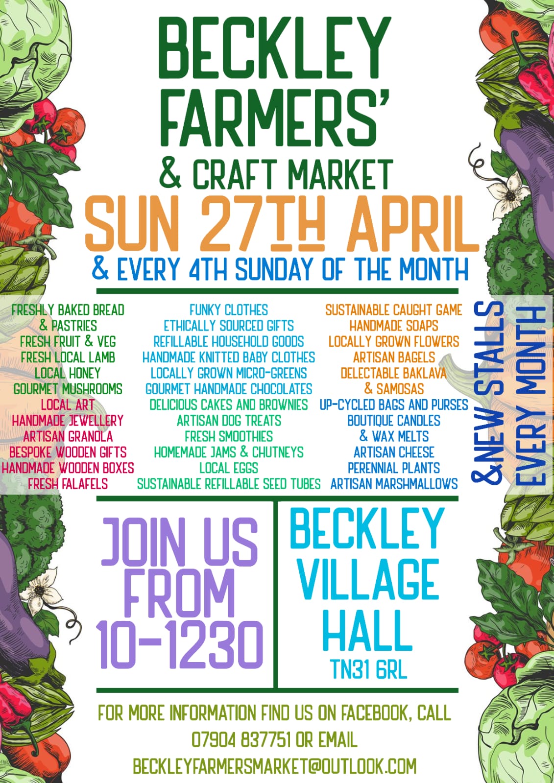 For more information find us on facebook, call 07904 837751 or email: BECKLEYFARMERSMARKET@OUTLOOK.COM