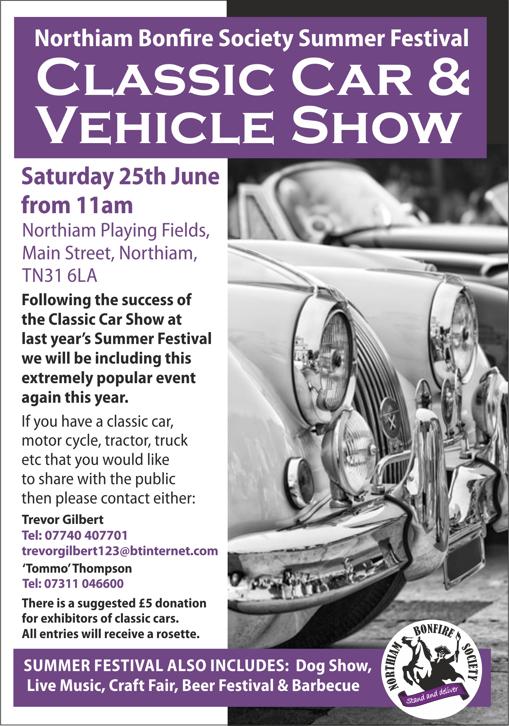 As part of Northiam Bonfire Society’s popular Midsummer Festival, we are delighted to invite you to take part in our Classic Car & Vehicle Show this year.