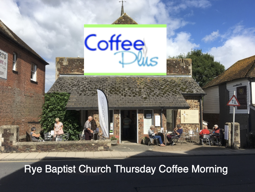 Coffee Plus, held in the foyer of Rye Baptist Church, Cinque Ports Street, offers a convenient opportunity to rest, after a visit to the Thursday Market.