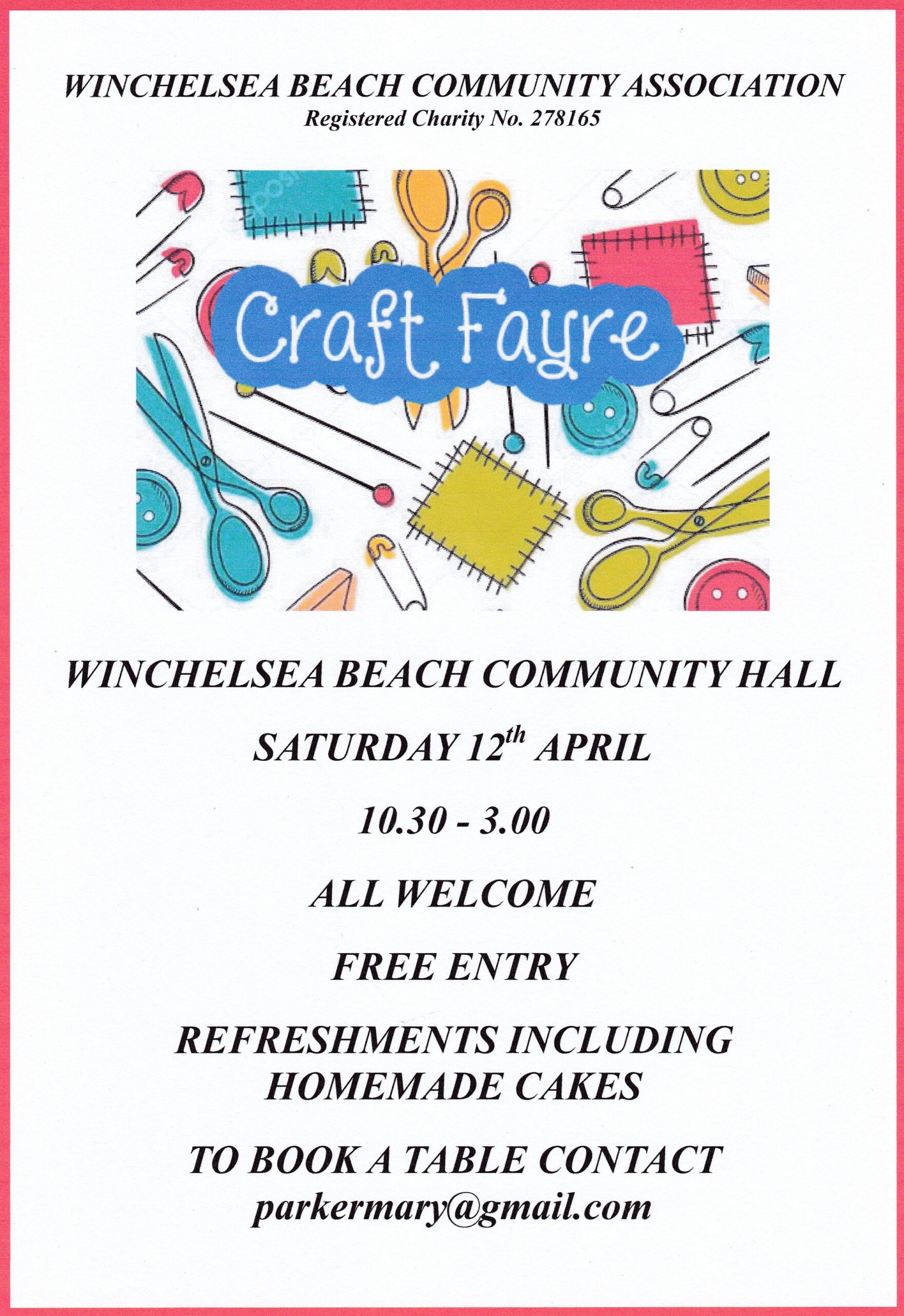 All Welcome to the Craft Fayre at Winchelsea Beach Community Hall on Saturday 12th April 10.30 – 3.00