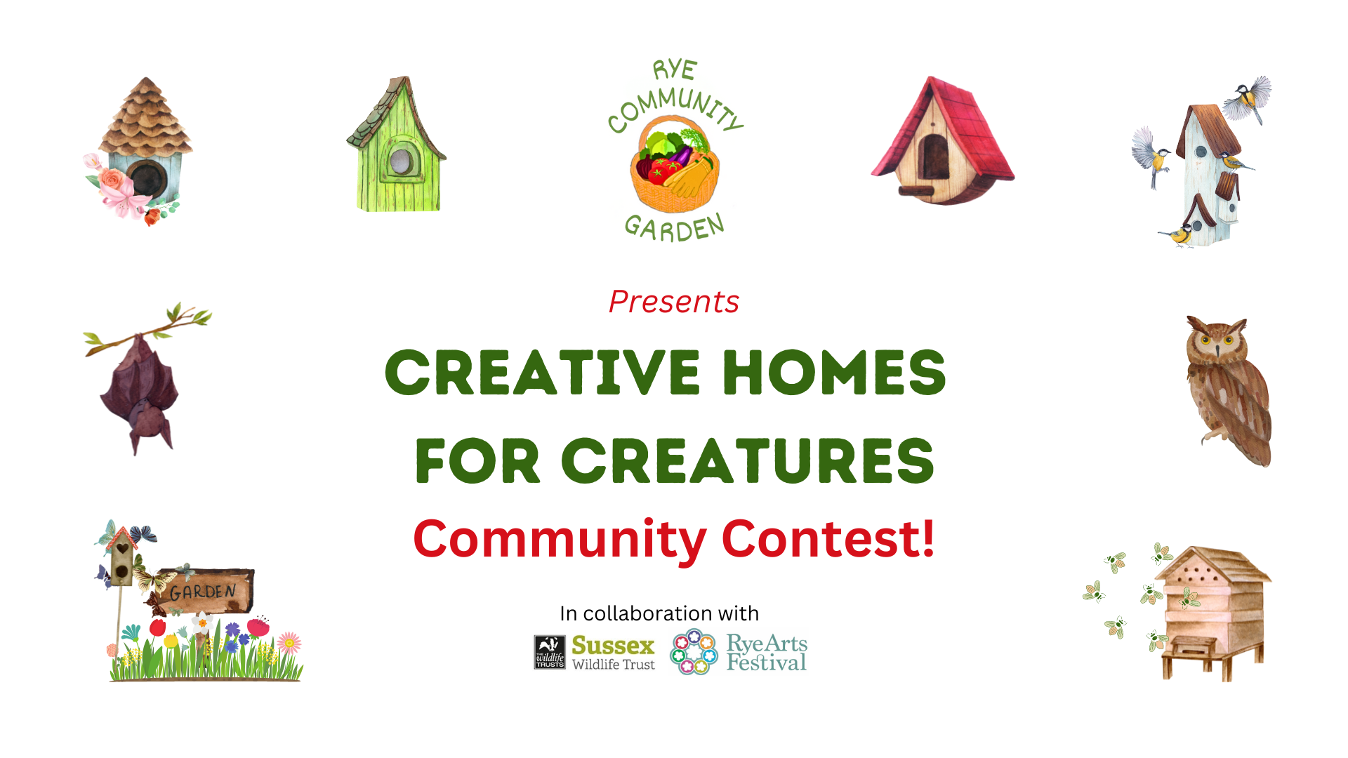 The Rye Community Food & Wildlife Garden is expanding our wildlife area and we’d like to adorn it with creative and artistic habitats for all the little critters that make a home there: bees, birds, bats, owls, butterflies, etc.