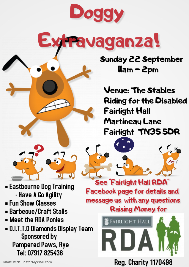 We are holding a fun doggy extravaganza on behalf of Fairlight Hall Riding for the Disabled, a registered charity.