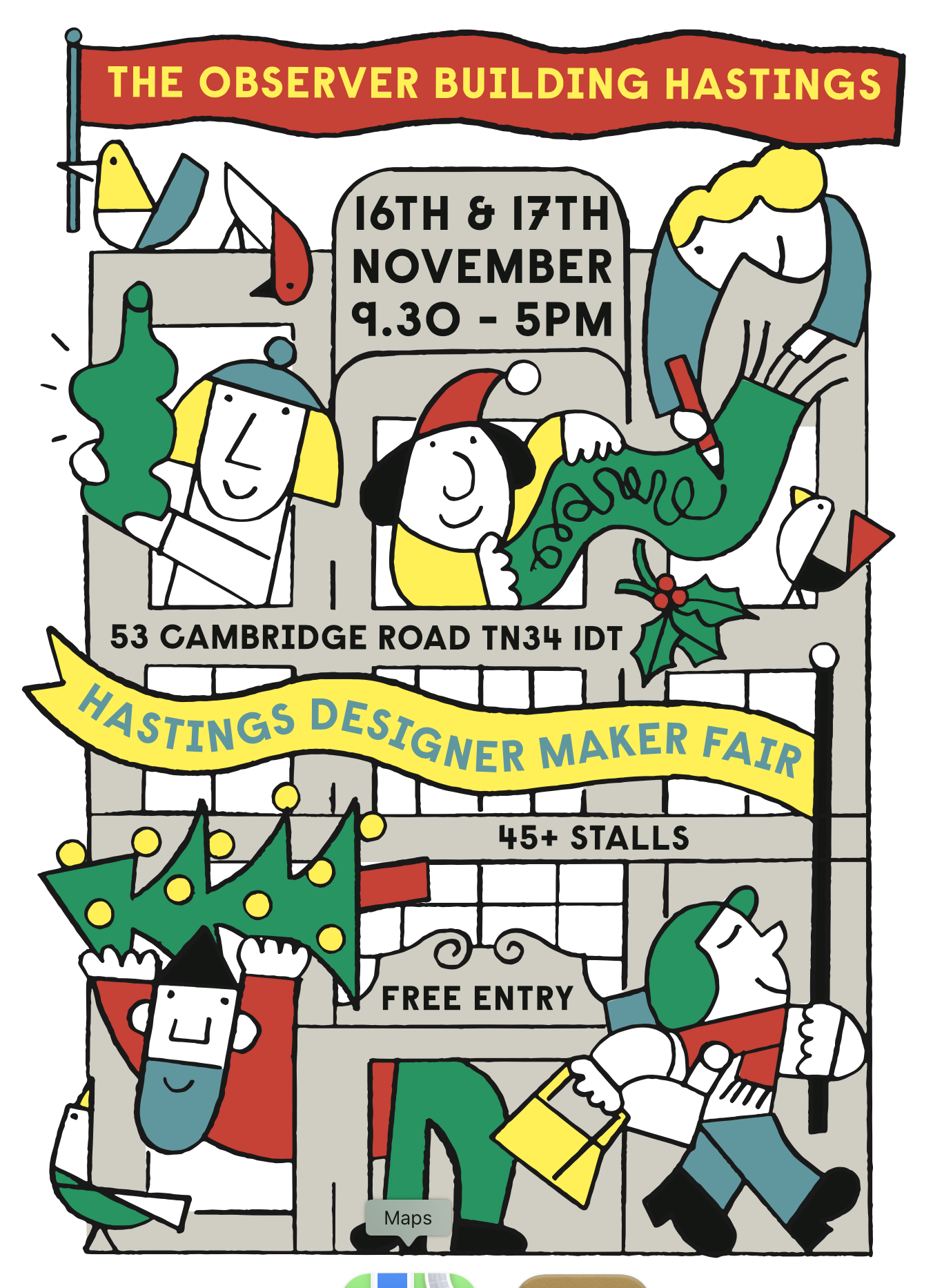 There are 45 + designer makers taking part, including textiles, clothing, stationary, giftable items, ceramics, and Christmas related products. Hannah Adams, owner of Simply Garden will be bringing festive planting including alongside a range of Christmas Trees and door wreaths for you to pre order, the service also includes a collection service. Local creative, Imogen Andrews, from Radiator Arts will be this year’s Christmas Elf, with oversized characterful costume, giving away children’s books to children who attend kindly provided by The Book Festival. We are also excited that Artist Keira Rathbone will be creating LIVE Christmas cards for you to send to a loved one, who may live further away, using her unique skill of creating images of people live on a vintage typewriter. We also have two great organisations taking part, Elevate Creates, from Hawkhurst who offer a service for adults with learning disabilities who creative workshops and coach and train life skills, they will bringing a great range of products including T shirts, mugs, plant pots and prints. We have also opened the door to young makers to take part, a cooperative of young designer makers who are bringing their products, developed during their time at Bexhill college. I feel proud to have talented young people taking part using the latest technology to create products from re-usable items.