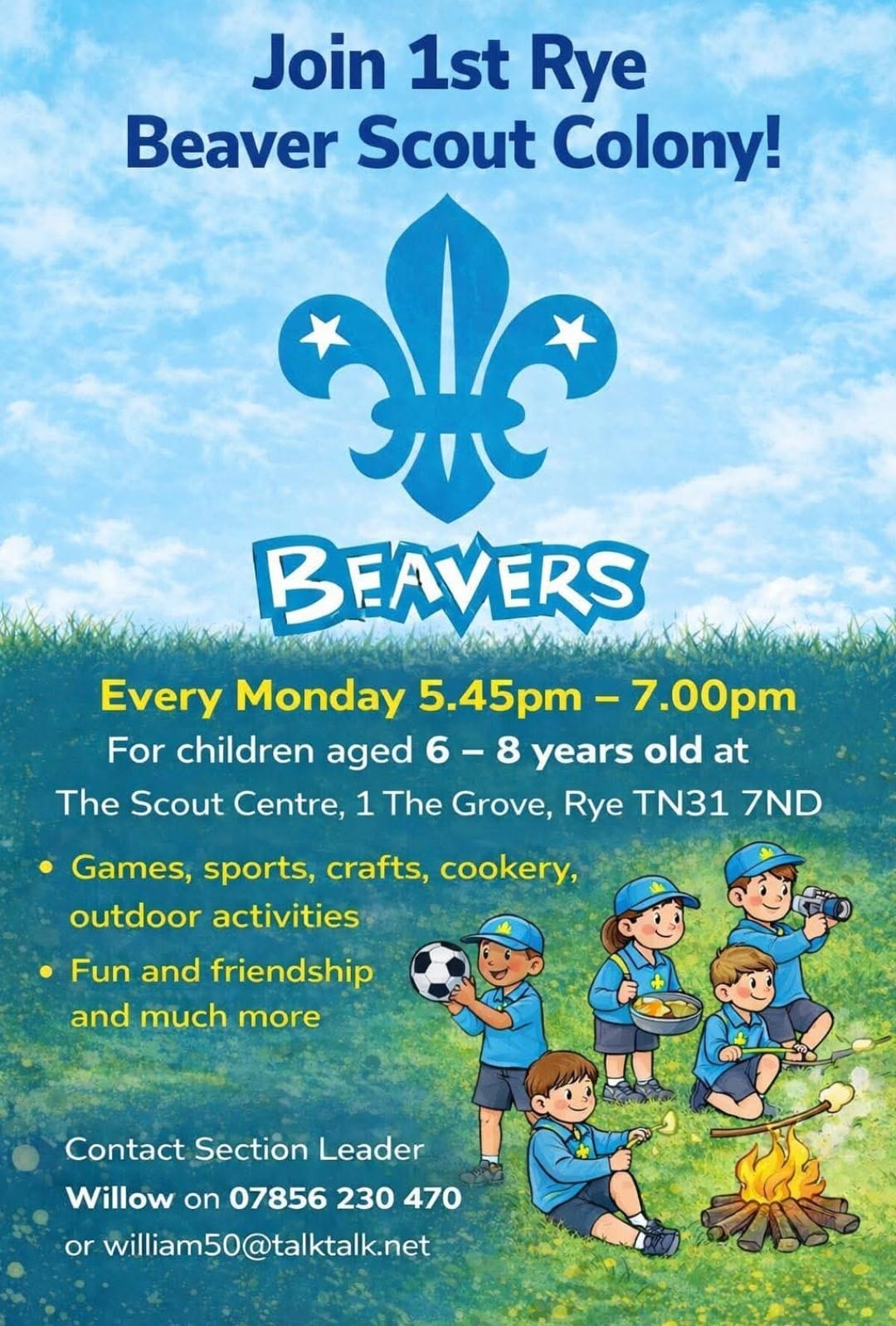 Join the Beavers + Add to Google Calendar + iCal / Outlook export 00 days 00 hours 00 minutes 00 seconds Date Mar 23 2026 Time 5:45 pm - 7:00 pm Location 1st Rye Scouts Hall, Rye Category Clubs & Societies Living Share this event