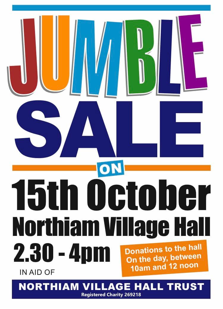 Northiam Village Hall Trust’s next Jumble Sale will be on Saturday 15th October. There is plenty of parking.