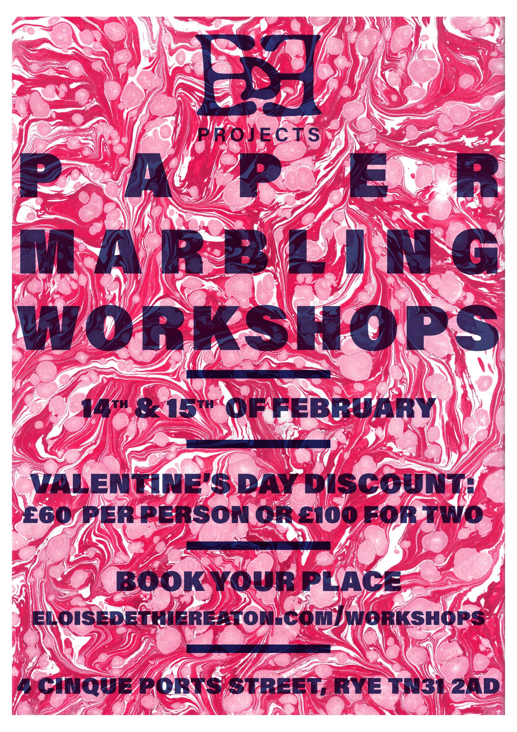 In this workshop, we will learn the art of paper marbling, a mesmerising process where abstract patterns are created by dropping liquid paint on a surface of thickened water. At its simplest this creates a delightful arrangement of stone-like shapes, but various tools can also be used to create more intricate patterns. Together we will work through a range of paper marbling techniques, from basic patterns like stones, Italian vein and swirls, through to more sophisticated ones like nonpareil.