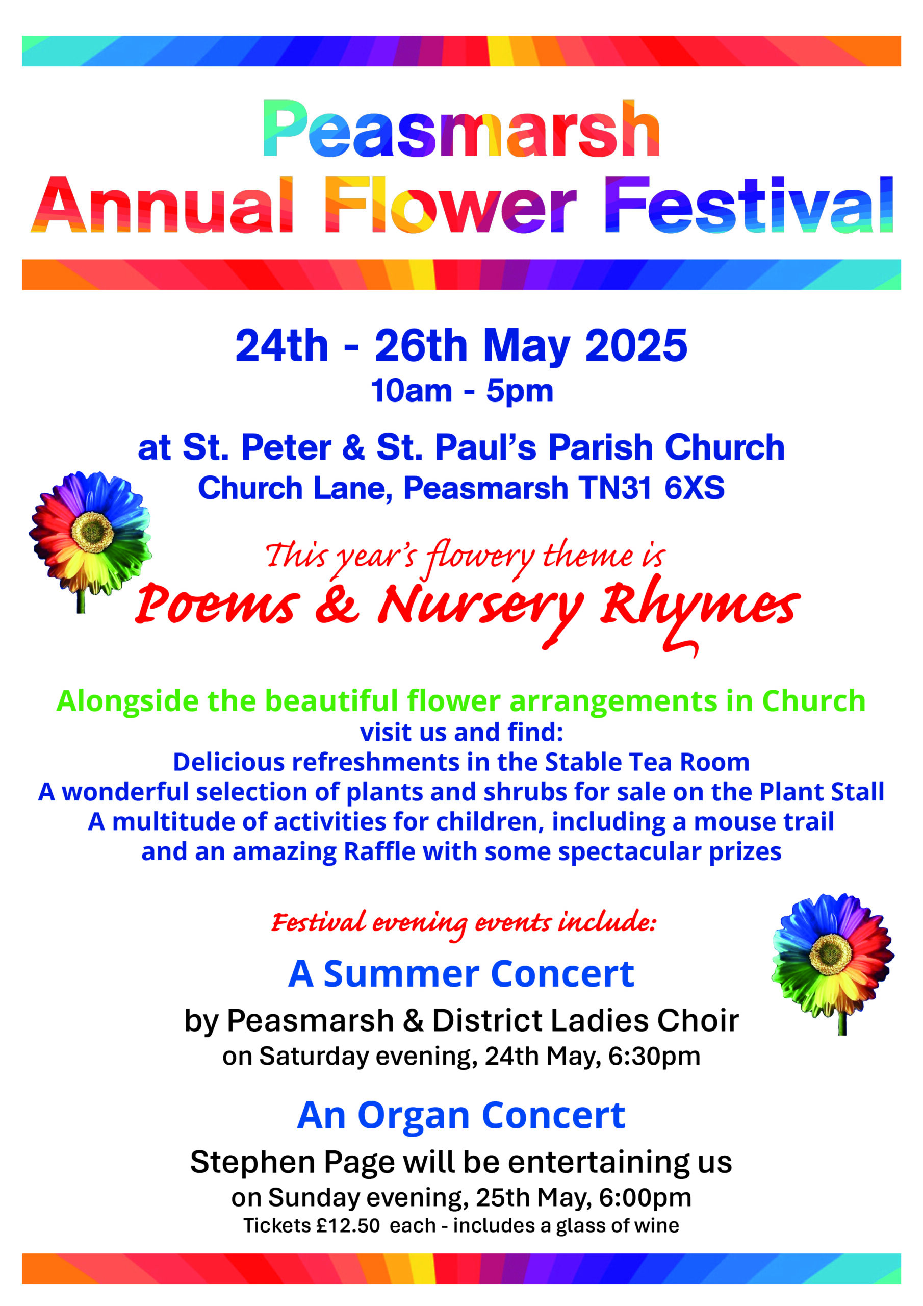 An Organ Concert – Stephen Page will be entertaining us on Sunday evening, 25th May, 6:00pm. Tickets £12.50 each – includes a glass of wine or other drink, Buy on the door or email peasmarshchurch.events@gmail.com for advance booking.